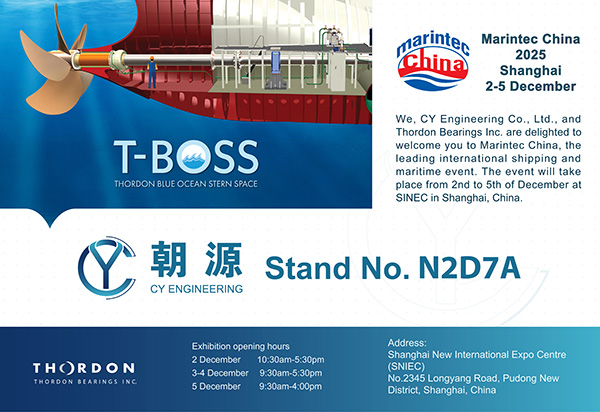 Marintec China 2025, Stand N2D7A, Dec. 2-5th, 2025, we, CY Engineering Co., Ltd. and Thordon Bearing Inc., are delighted to welcome your coming.